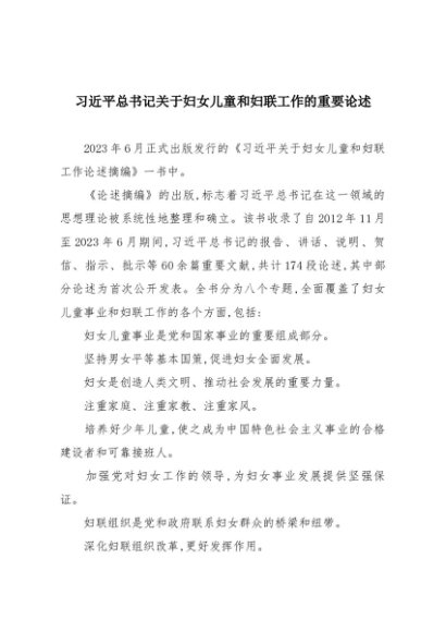 【七哥公文】2025年:习近平总书记关于妇女儿童和妇联工作的重要论述+更多免费公文+VX:QiGeGongWen2024