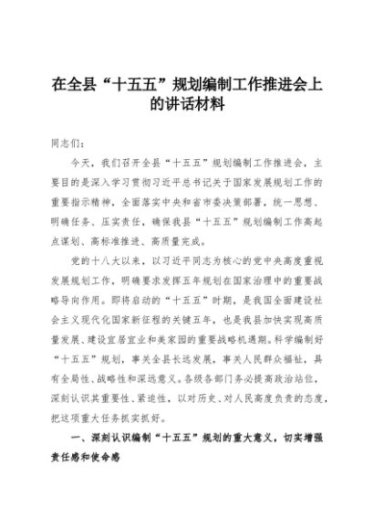 / 【七哥公文】2025年:在全县“十五五”规划编制工作推进会上的讲话材料+更多免费公文+VX:QiGeGongWen2024