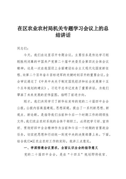 / 【七哥公文】2025年:在区农业农村局机关专题学习会议上的总结讲话+更多免费公文+VX:QiGeGongWen2024