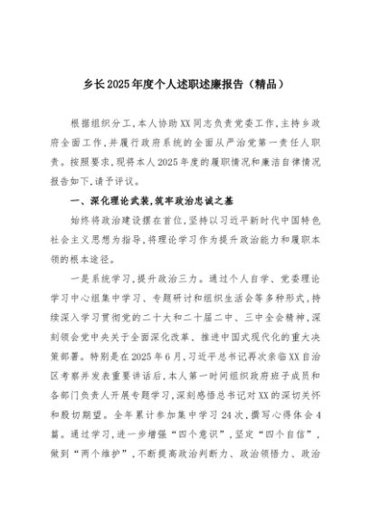 / 【七哥公文】2025年:乡长2025年度个人述职述廉报告(精品)+更多免费公文+VX:QiGeGongWen2024