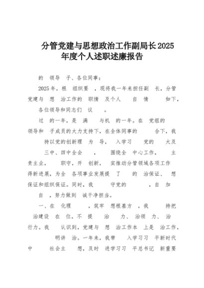【七哥公文】2025年:分管党建与思想政治工作副局长2025年度个人述职述廉报告+更多免费公文+VX:QiGeGongWen2024