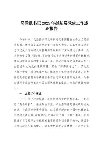 / 【七哥公文】2025年:局党组书记2025年抓基层党建工作述职报告+更多免费公文+VX:QiGeGongWen2024