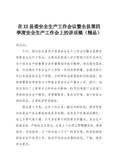 【七哥公文】2025年:在XX县委安全生产工作会议暨全县第四季度安全生产工作会上的讲话稿(精品)+更多免费公文+VX:QiGeGongWen2024