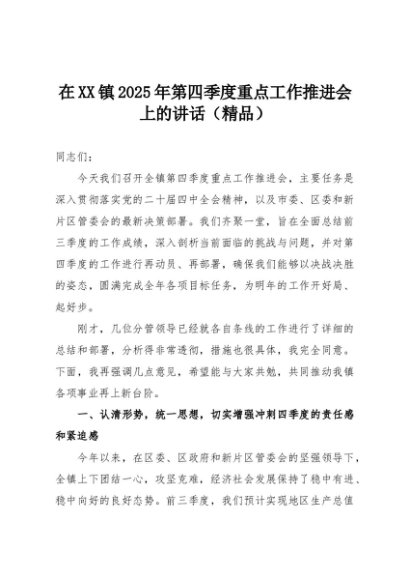 【七哥公文】2025年:在XX镇2025年第四季度重点工作推进会上的讲话(精品)+更多免费公文+VX:QiGeGongWen2024
