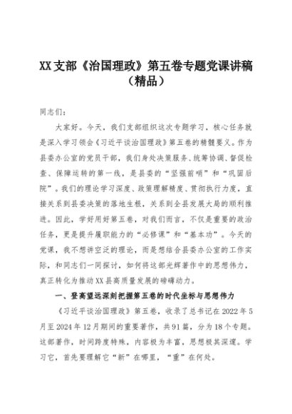 / 【七哥公文】2025年:XX支部《治国理政》第五卷专题党课讲稿(精品)+更多免费公文+VX:QiGeGongWen2024