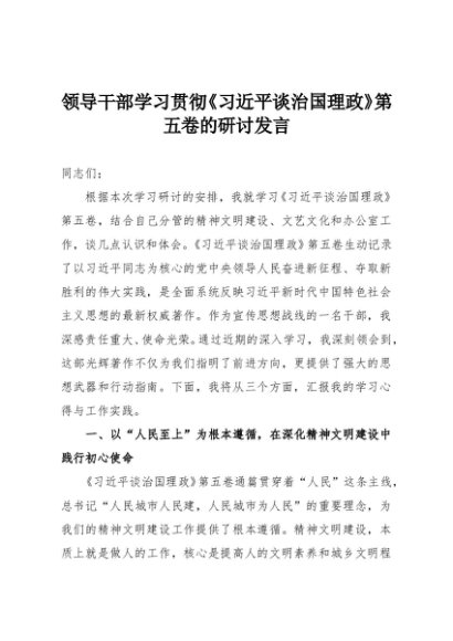 【七哥公文】2025年:领导干部学习贯彻《习近平谈治国理政》第五卷的研讨发言+更多免费公文+VX:QiGeGongWen2024