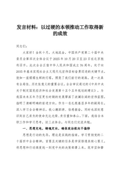 / 【七哥公文】2025年:发言材料:以过硬的本领推动工作取得新的成效+更多免费公文+VX:QiGeGongWen2024