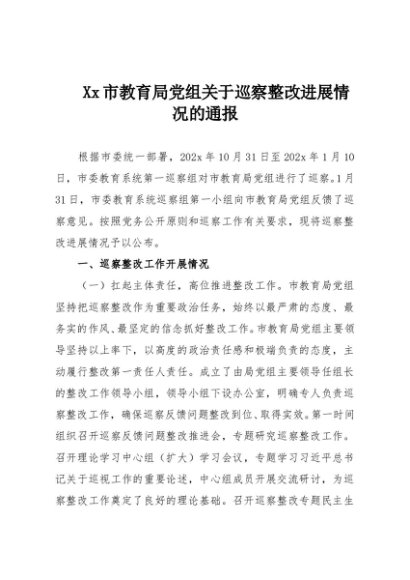 / 【七哥公文】2025年:Xx市教育局党组关于巡察整改进展情况的通报+更多免费公文+VX:QiGeGongWen2024