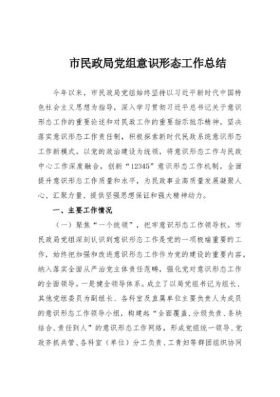/ 【七哥公文】2025年:市民政局党组意识形态工作总结+更多免费公文+VX:QiGeGongWen2024
