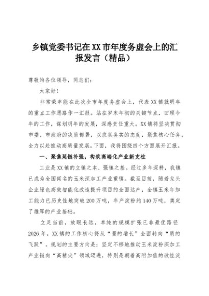 【七哥公文】2025年:乡镇党委书记在XX市年度务虚会上的汇报发言(精品)+更多免费公文+VX:QiGeGongWen2024