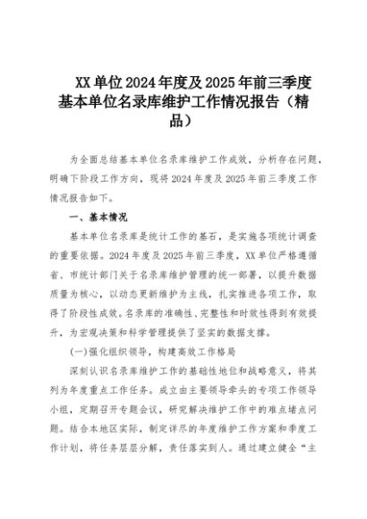【七哥公文】2025年:XX单位2024年度及2025年前三季度基本单位名录库维护工作情况报告(精品)+更多免费公文+VX:QiGeGongWen2024