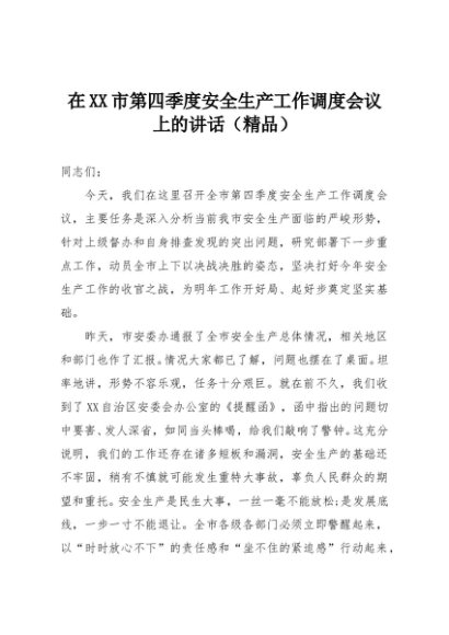 【七哥公文】2025年:在XX市第四季度安全生产工作调度会议上的讲话(精品)+更多免费公文+VX:QiGeGongWen2024