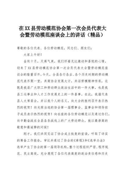 【七哥公文】2025年:在XX县劳动模范协会第一次会员代表大会暨劳动模范座谈会上的讲话(精品)+更多免费公文+VX:QiGeGongWen2024