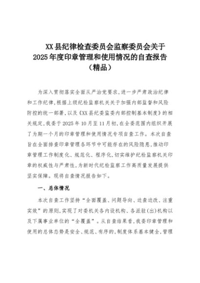 【七哥公文】2025年:XX县纪律检查委员会监察委员会关于2025年度印章管理和使用情况的自查报告(精品)+更多免费公文+VX:QiGeGongWen2024
