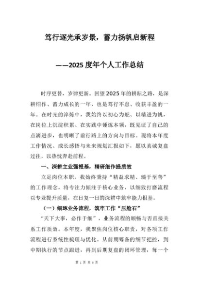 【七哥公文】2025年:2025度年个人工作总结:笃行逐光承岁景,蓄力扬帆启新程+更多免费公文+VX:QiGeGongWen2024