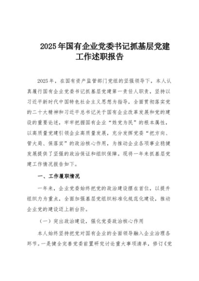 / 【七哥公文】2025年:2025年国有企业党委书记抓基层党建工作述职报告+更多免费公文+VX:QiGeGongWen2024