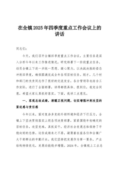 / 【七哥公文】2025年:在全镇2025年四季度重点工作会议上的讲话+更多免费公文+VX:QiGeGongWen2024