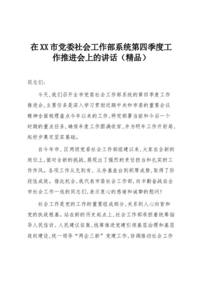 【七哥公文】2025年:在XX市党委社会工作部系统第四季度工作推进会上的讲话(精品)+更多免费公文+VX:QiGeGongWen2024