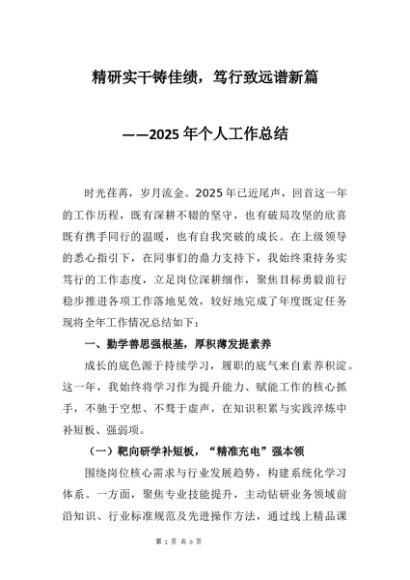 【七哥公文】2025年:2025年个人工作总结:精研实干铸佳绩,笃行致远谱新篇+更多免费公文+VX:QiGeGongWen2024