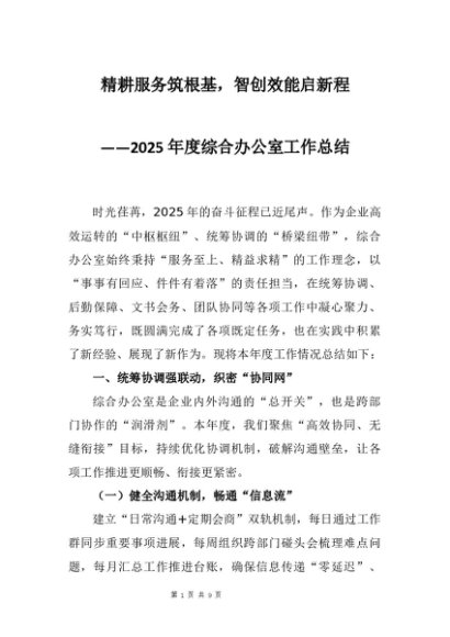 【七哥公文】2025年:2025年度综合办公室工作总结:精耕服务筑根基,智创效能启新程+更多免费公文+VX:QiGeGongWen2024