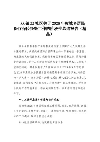 【七哥公文】2025年:XX镇XX社区关于2026年度城乡居民医疗保险征缴工作的阶段性总结报告(精品)+更多免费公文+VX:QiGeGongWen2024