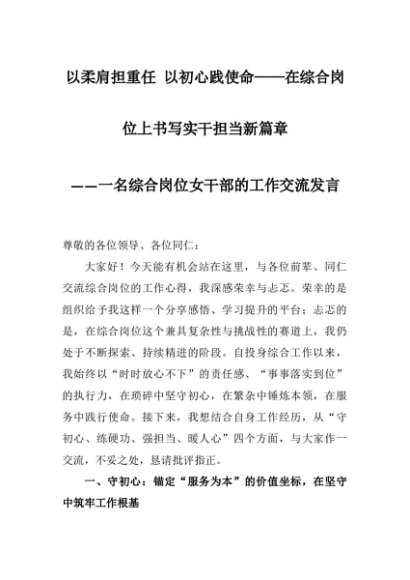 【七哥公文】2025年:一名综合岗位女干部的工作交流发言:以柔肩担重任,以初心践使命,在综合岗位上书写实干担当新篇章+更多免费公文+VX:QiGeGongWen2024