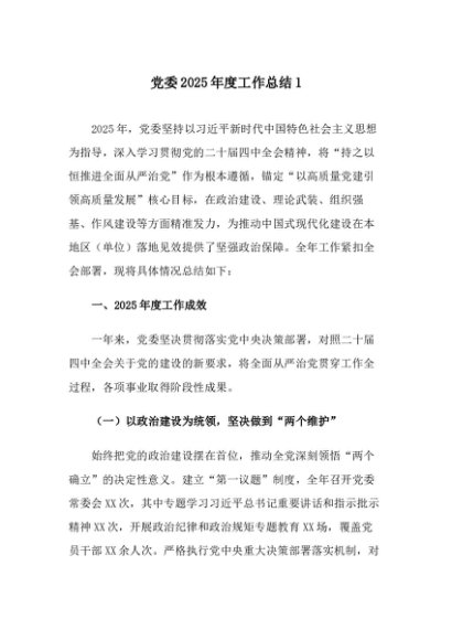 / 【七哥公文】2025年:党委2025年度工作总结1+更多免费公文+VX:QiGeGongWen2024