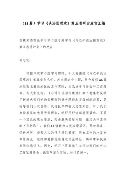 【七哥公文】2025年:(33篇)学习《谈治国理政》第五卷研讨发言汇编+更多免费公文+VX:QiGeGongWen2024