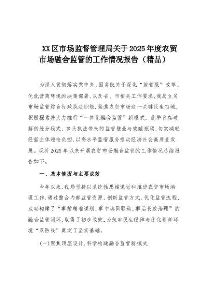 【七哥公文】2025年:XX区市场监督管理局关于2025年度农贸市场融合监管的工作情况报告(精品)+更多免费公文+VX:QiGeGongWen2024
