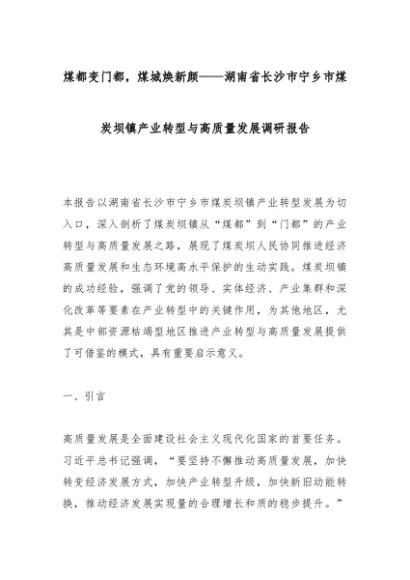 【七哥公文】2025年:煤都变门都,煤城焕新颜——湖南省长沙市宁乡市煤炭坝镇产业转型与高质量发展调研报告+更多免费公文+VX:QiGeGongWen2024