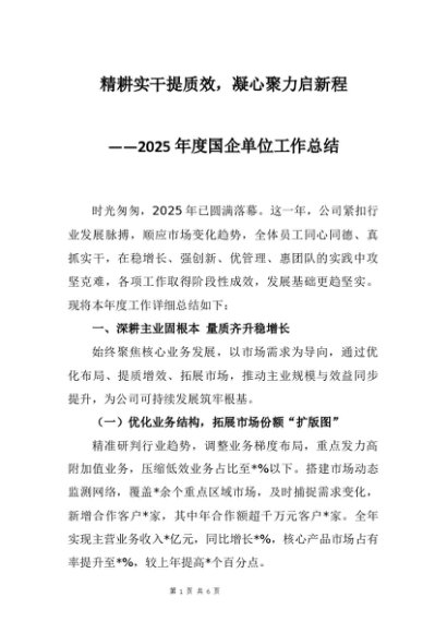 【七哥公文】2025年:2025年度国企单位工作总结:精耕实干提质效,凝心聚力启新程+更多免费公文+VX:QiGeGongWen2024