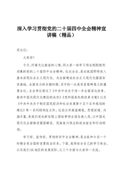 / 【七哥公文】2025年:深入学习贯彻党的二十届四中全会精神宣讲稿(精品)+更多免费公文+VX:QiGeGongWen2024