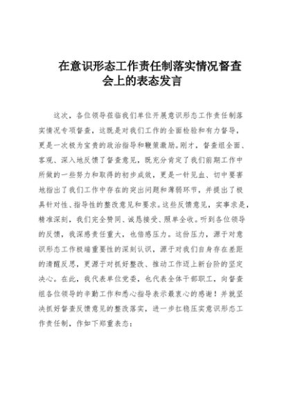 / 【七哥公文】2025年:在意识形态工作责任制落实情况督查会上的表态发言+更多免费公文+VX:QiGeGongWen2024