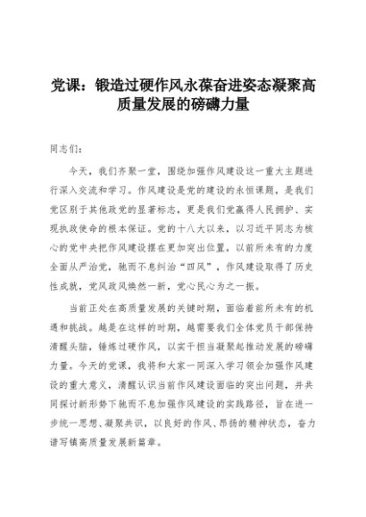 【七哥公文】2025年:党课:锻造过硬作风永葆奋进姿态凝聚高质量发展的磅礴力量+更多免费公文+VX:QiGeGongWen2024