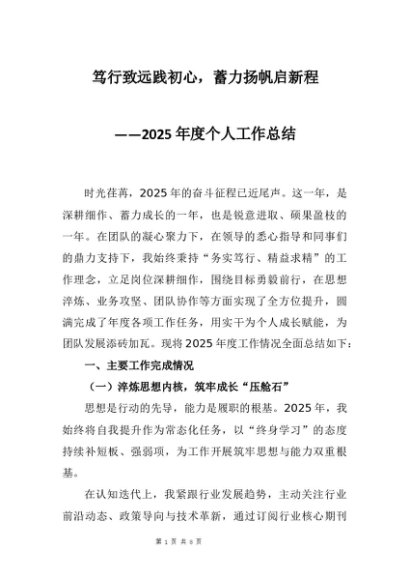 【七哥公文】2025年:2025年度个人工作总结:笃行致远践初心,蓄力扬帆启新程+更多免费公文+VX:QiGeGongWen2024