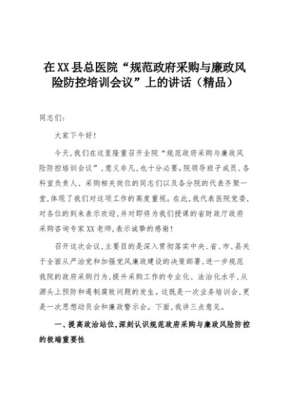 【七哥公文】2025年:在XX县总医院“规范政府采购与廉政风险防控培训会议”上的讲话(精品)+更多免费公文+VX:QiGeGongWen2024
