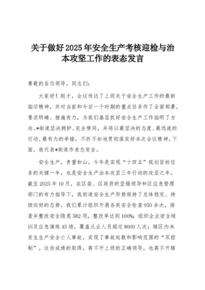 【七哥公文】2025年:关于做好2025年安全生产考核迎检与治本攻坚工作的表态发言+更多免费公文+VX:QiGeGongWen2024