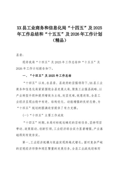 【七哥公文】2025年:XX县工业商务和信息化局“十四五”及2025年工作总结和“十五五”及2026年工作计划(精品)+更多免费公文+VX:QiGeGongWen2024