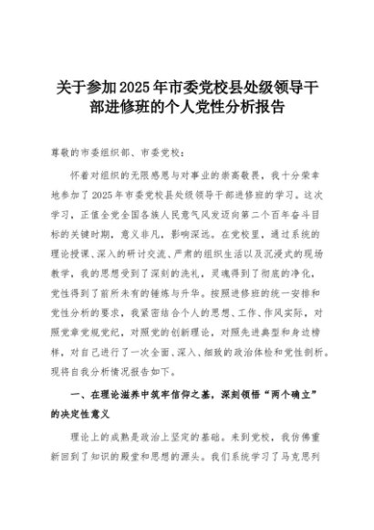 【七哥公文】2025年:关于参加2025年市委党校县处级领导干部进修班的个人党性分析报告+更多免费公文+VX:QiGeGongWen2024