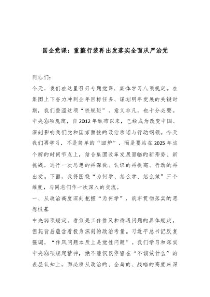 / 【七哥公文】2025年:国企党课:重整行装再出发落实全面从严治党+更多免费公文+VX:QiGeGongWen2024