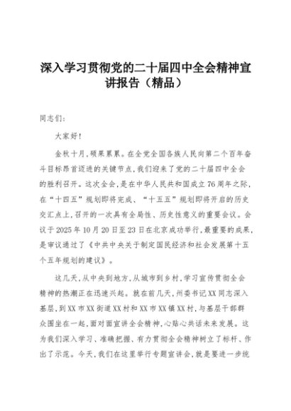 / 【七哥公文】2025年:深入学习贯彻党的二十届四中全会精神宣讲报告(精品)+更多免费公文+VX:QiGeGongWen2024
