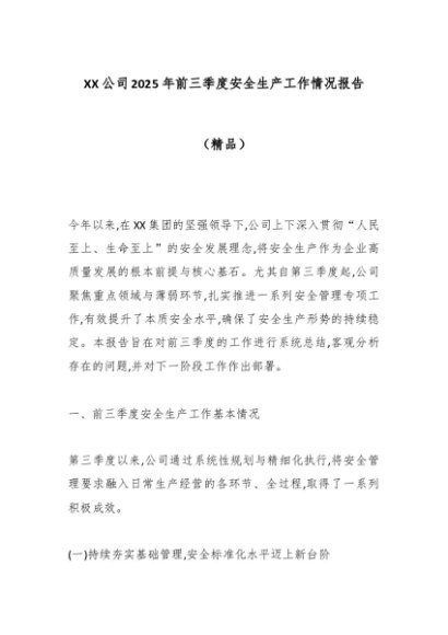 【七哥公文】2025年:XX公司2025年前三季度安全生产工作情况报告(精品)+更多免费公文+VX:QiGeGongWen2024