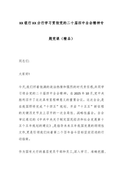 【七哥公文】2025年:XX银行XX分行学习贯彻党的二十届四中全会精神专题党课(精品)+更多免费公文+VX:QiGeGongWen2024