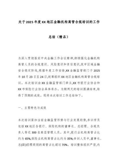 【七哥公文】2025年:关于2025年度XX地区金融机构高管合规培训的工作总结(精品)+更多免费公文+VX:QiGeGongWen2024