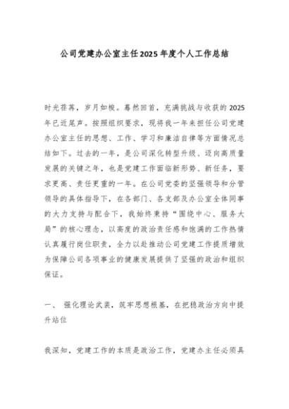 / 【七哥公文】2025年:公司党建办公室主任2025年度个人工作总结+更多免费公文+VX:QiGeGongWen2024