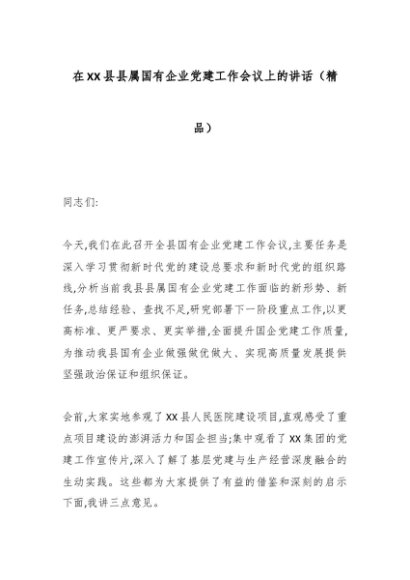 【七哥公文】2025年:在XX县县属国有企业党建工作会议上的讲话(精品)+更多免费公文+VX:QiGeGongWen2024