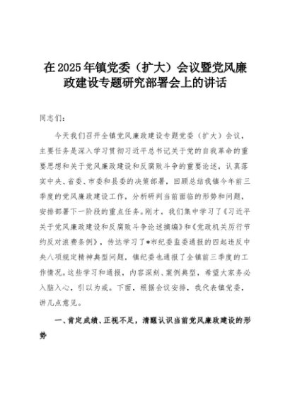 【七哥公文】2025年:在2025年镇党委(扩大)会议暨党风廉政建设专题研究部署会上的讲话+更多免费公文+VX:QiGeGongWen2024