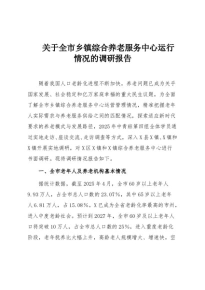 / 【七哥公文】2025年:关于全市乡镇综合养老服务中心运行情况的调研报告+更多免费公文+VX:QiGeGongWen2024