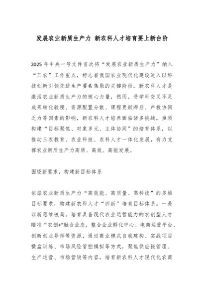 / 【七哥公文】2025年:发展农业新质生产力 新农科人才培育要上新台阶+更多免费公文+VX:QiGeGongWen2024