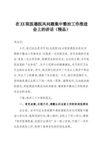 【七哥公文】2025年:在XX院医德医风问题集中整治工作推进会上的讲话(精品)+更多免费公文+VX:QiGeGongWen2024